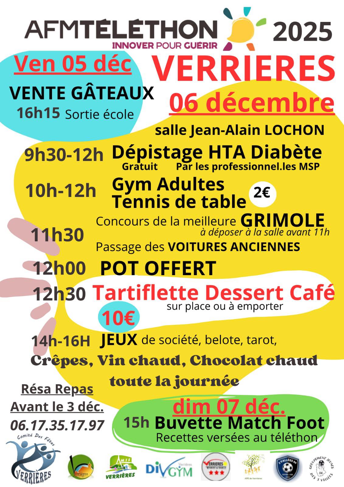 Venez participer aux activités proposées par les associations de Verrières, sur lesquelles nous reverserons toutes les recettes au Téléthon